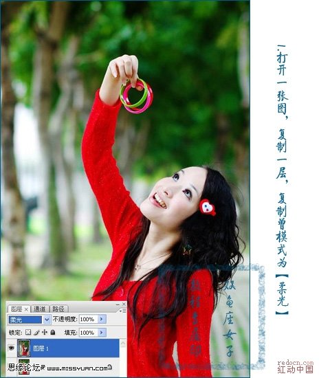 1、打開原圖,復制一層,模式設為:柔光。