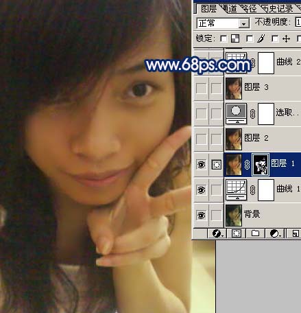 <圖2> 2、新建一個(gè)圖層,按ctrl + alt + shift + e蓋印圖層,執(zhí)行:濾鏡 > 模糊 > 高斯模糊,數(shù)值為3,確定后加上圖層蒙版,把蒙版填充黑色,然后用白色畫(huà)筆在有雜色的地方涂抹,簡(jiǎn)單給人物磨皮。
