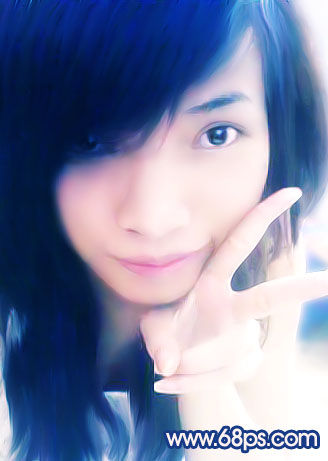 6、新建一個(gè)圖層,蓋印圖層,用涂抹工具把頭發(fā)上的雜色涂掉,涂的時(shí)候要順著頭發(fā)涂,效果如圖10。