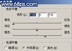 <圖16> 11、創(chuàng)建色彩平衡調(diào)整圖層,參數(shù)設(shè)置如圖17,效果如圖18。