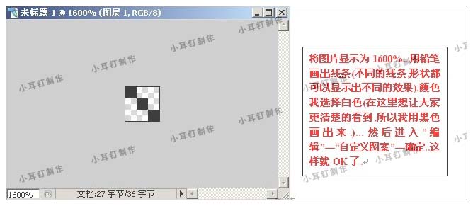 將圖片稍微放大,用鉛筆點出下圖所示的圖形,選擇菜單:編輯 > 自定義圖案。