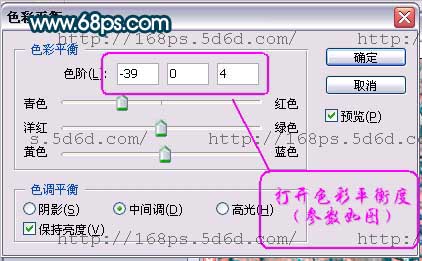 6、創建色彩平衡調整圖層,參數設置如下圖。