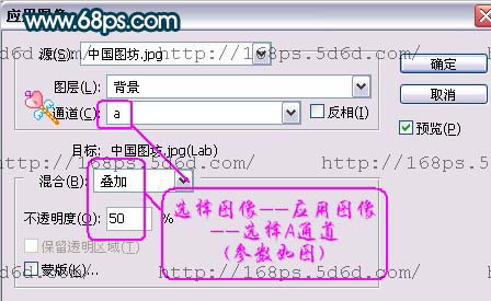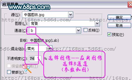 4、再選擇菜單: 圖像 > 應用圖像,參數設置如下圖。