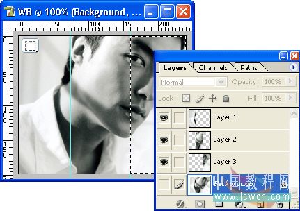 2、選擇矩形選框工具(m)分別將圖片三個(gè)區(qū)域選出并復(fù)制選區(qū)到新層(ctrl+j),然后隱藏背景圖層