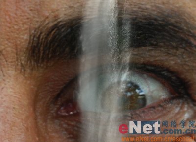 第二十步:新建一層,復制了一些普通的皮膚放在有褶皺的皮膚的右側,并為其添加圖層蒙版,使用黑色筆刷涂抹,得到下圖所示效果。這一步的目的是使臉部的皮膚看起來更自然。