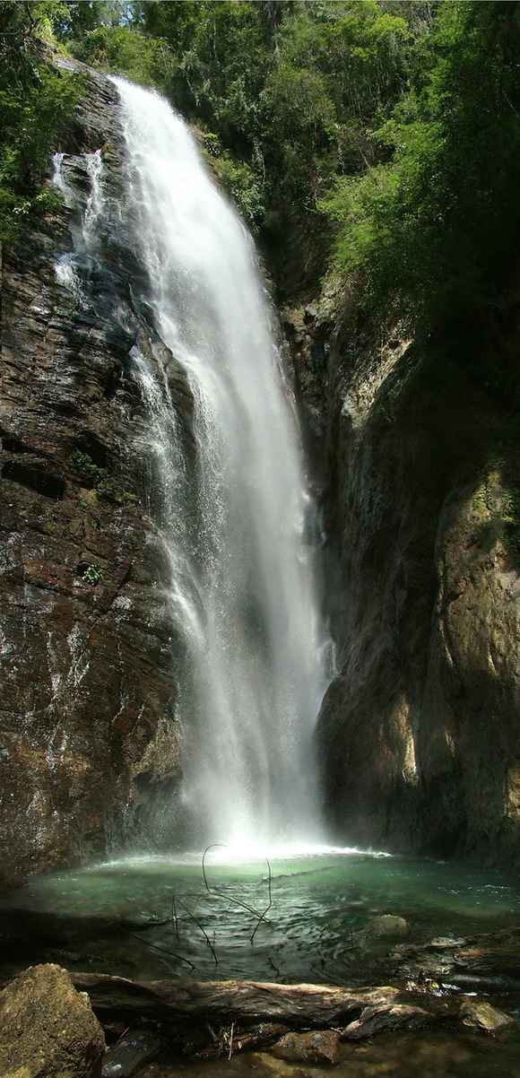 第十二步: 為【瀑布】圖層添加蒙版,使用不透明度較低的黑色筆刷在蒙版上涂抹(此時忽略水流部分),得到下圖效果。