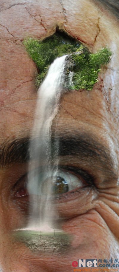 本篇教程通過5張普通的素材照片合成了一幅極具創造性的畫面,人物的頭部破了一個洞,有瀑布傾斜而下。編者在看了之后除了驚嘆作者精湛的ps技藝之外,對作者的創意更是佩服不已……
