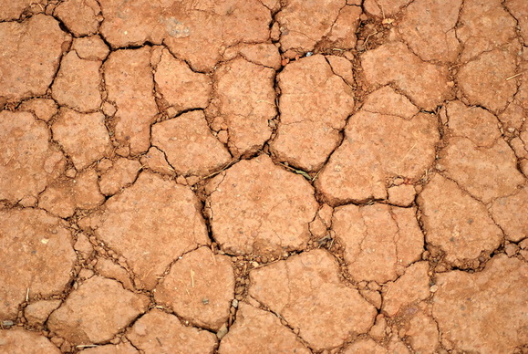 第四步: 將【土地】的圖層混合模式改成【疊加】。這時你會注意到原圖像的顏色有了損失,而且“裂痕”有些過亮,不夠真實,我們需要對其進行調整。首先點擊圖層調板下方的【創建新的填充或調整圖層】按鈕,在彈出的菜單中選擇【色相/飽和度】,不更改任何值,直接點【確定】按鈕。按住【alt】鍵不放,點擊如圖05中紅箭頭所示的位置,添加剪切蒙版。這樣我們在調節色相及飽和度時就只對【土地】圖層起作用了。雙擊調整圖層【色相/飽和度】的縮略圖,調出【色相/飽和度】對話框,參數設置如圖06所示。然后再添加一個【亮度/對比度】調整圖層,仍然要添加【剪切蒙版】,只是這次要在兩個調整層之間單擊鼠標。將亮度和對比度都調整為-50。這是【土地】圖層形成的“裂痕”就逼真多了,效果如圖07所示。