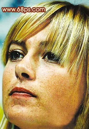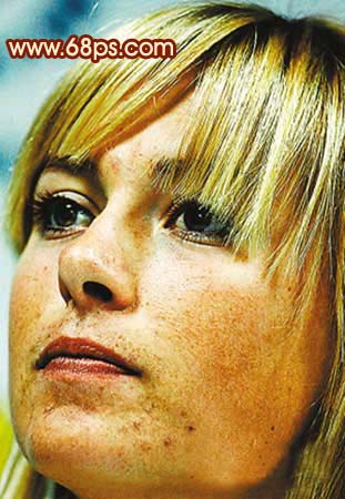 本教程的美容過程比較復雜。從原圖可以看出,照片嚴重偏色及臉上雜點及色塊較多,處理起來只能一步一步來做。先大致把大的色塊清理干凈,然后在修復下的細節。處理的時候要有點耐心。