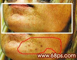 <圖2> 2、選擇修復工具,把人物臉上較大的斑點去掉,如圖3。