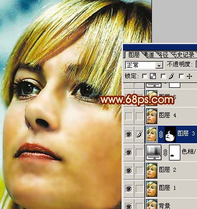 <圖5> 4、新建一個圖層,按ctrl + alt + shift + e蓋印圖層,執行:濾鏡 > 模糊 > 高斯模糊,數值為3,確定后加上圖層蒙版,把蒙版填充黑色,然后用白色畫筆在人物臉上有雜色的地方涂抹,給人物磨皮,效果如圖6。