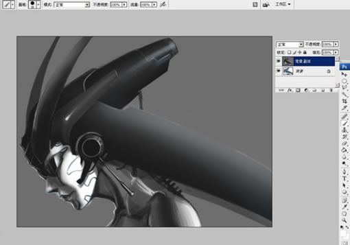 7、不斷的深入細節。這里要注意的是同為金屬質地,但由于表面的光滑程度不同,所以對光的反射程度就不同。讓你的作品真實可信,就必須對質感進行細致的刻畫。