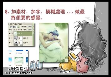 8、加素材、文字,做模糊處理。