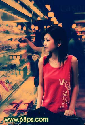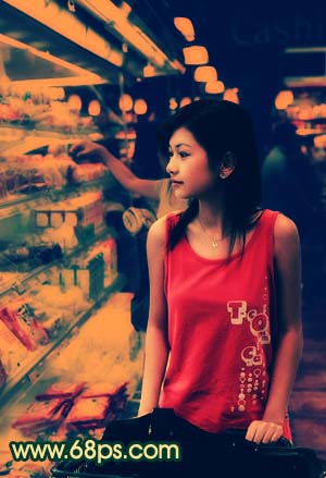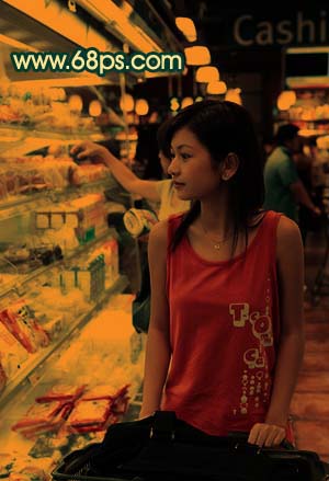 4、新建一個圖層,按ctrl + alt + ~調出高光選區,填充顏色:#fecd0b,然后把圖層混合模式改為“正片疊底”,效果如圖7。