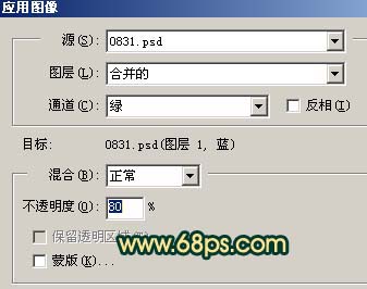 1、打開原圖,按ctrl + j復制一層,點通道面板,選擇濾色通道,執行:圖像 > 應用圖像,參數設置如圖1,效果如圖2。