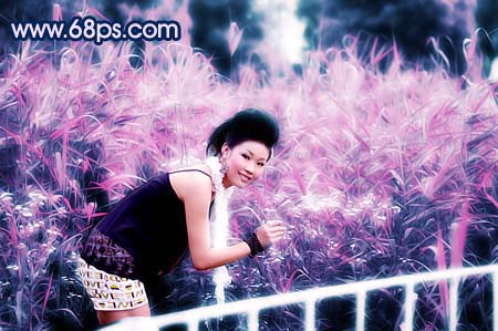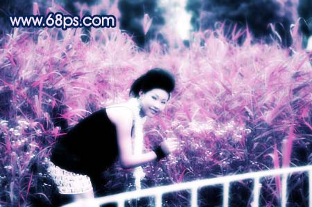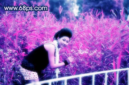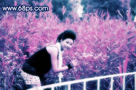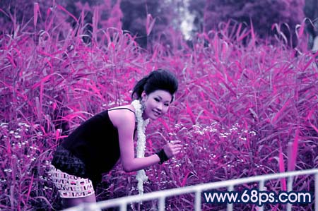 1、打開原圖,新建一個(gè)圖層,填充顏色:#e7038e,然后把圖層混合模式改為“色相”,效果如圖1。