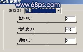 <圖7> 6、創(chuàng)建色相/飽和度調(diào)整圖層,參數(shù)設(shè)置如圖8,效果如圖9。