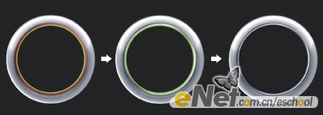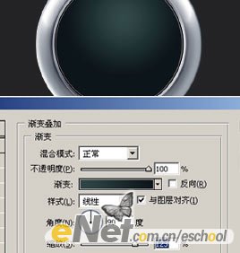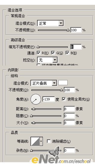 5.復制b circle層然后改變之前的圖層樣式。將之前附加的漸變疊加和斜面與浮雕圖層樣式去除加入內陰影圖層樣式。(注意將填充不透明度也設置為0)。