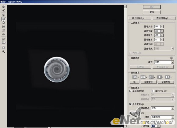 12.執行濾鏡以后不要區需要選擇區,再接著執行濾鏡-液化并選擇褶皺工具。進一步加大扭曲度