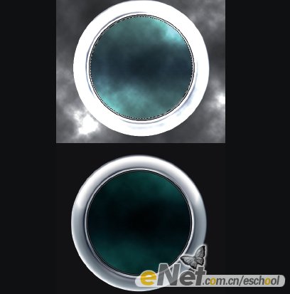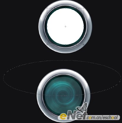 9.建立一新圖層為screen,再在文檔中心位置用橢圓選框工具建立一正圓選區用白色填充。雙擊該圖層加入漸變疊加圖層樣式。