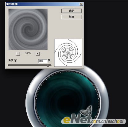 11.復制云彩層,將復制層命名為twirl并將圖層混合模式設置為顏色減淡。執行圖層-圖層蒙版-應用。之后再次按住ctrl+點擊screen層載入其選區,然后執行濾鏡-扭曲-旋轉扭曲。