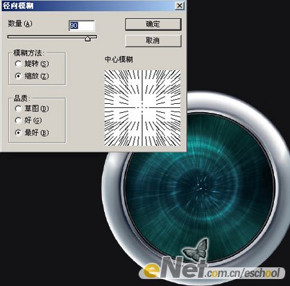 15.執行濾鏡-模糊-徑向模糊,設置如下。下面再次按住ctrl+點擊screen層載入其選區,然后回到云彩層上執行圖層-圖層蒙版-顯示選區。