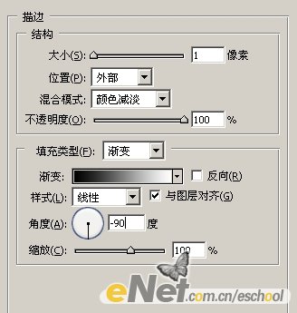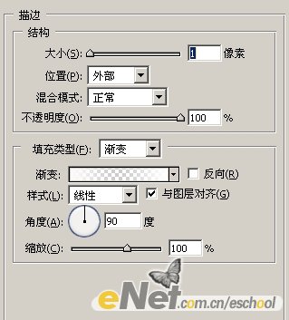 6.選擇m circle層加入漸變疊加和描邊圖層樣式。