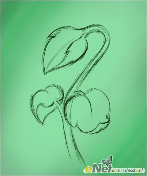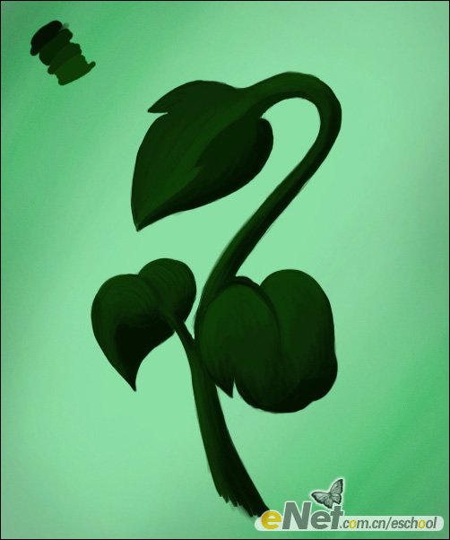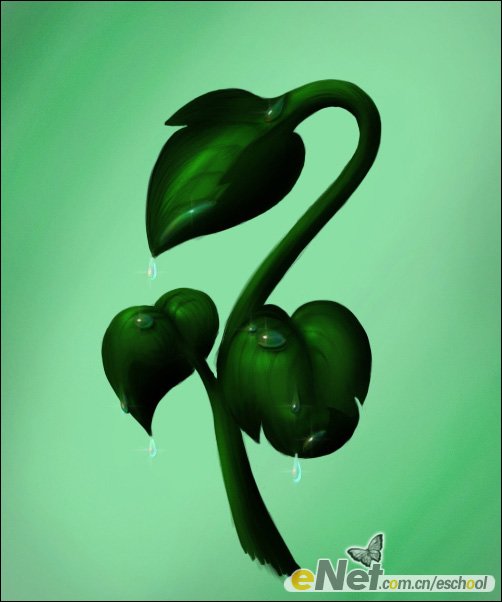 11、植物基本上完成了。現在我們開始畫露珠。還是先用簡單的畫筆工具勾出露珠的輪廓。