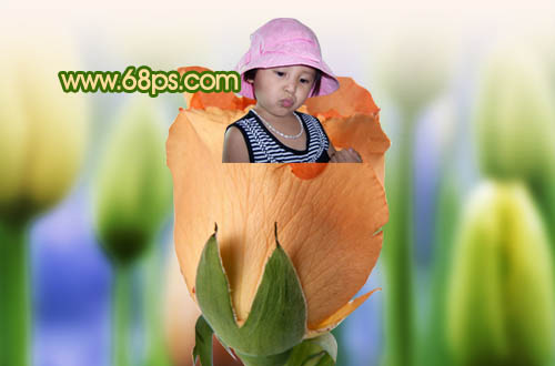 5、打開圖7所示的人物素材,用鋼筆工具把人物勾出來,然后回到剛才操作的文件,在花朵圖層上面新建一個(gè)圖層,把人物拖進(jìn)來,適當(dāng)?shù)陌碿trl + t調(diào)節(jié)下大小,效果如圖7。