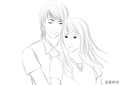 10、女生的眼睛要多畫些細節的睫毛,這樣才會更生動,去掉線稿看下。