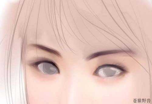以下是眼睛的繪畫步驟選用較細的噴槍畫出眉毛和上眼睛的輪廓7、我習慣先從眼睛開始畫起,臉部的大致明暗是先噴好的,之后邊刻畫五官邊調整細節,首先是眼睛,這個時候因為有線稿層覆蓋在上面,要記得隨時去掉線稿層看效果。