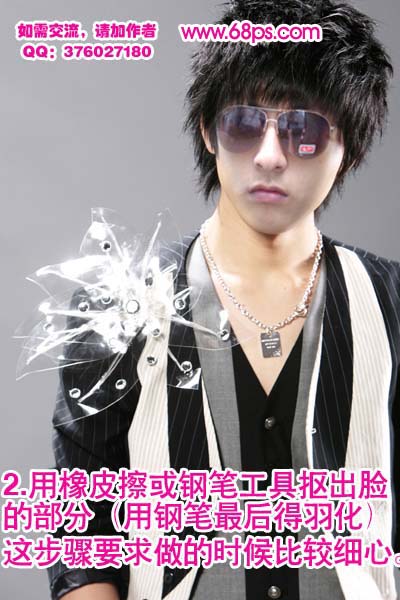 2、打開圖3所示的素材,按ctrl + v把復制的頭像復制過來,放好位置及調整大小,再用橡皮工具把臉部邊緣擦掉。