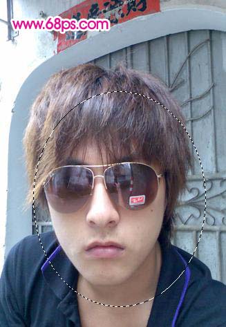 | 1、打開圖1所示的素材,選擇橢圓選框工具把人物的臉部框選出來,按ctrl + c復制如圖2。 |