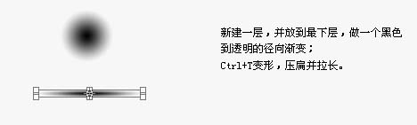 11、新建一個圖層,并放到最下層,做一個黑色到透明的徑向漸變,然后按ctrl + t壓扁并拉長。