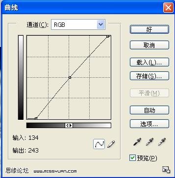 2、創建曲線調整圖層,適當把圖片調亮,參數設置如下圖,確定后用黑色畫筆在蒙版上把圖片的上半部分擦出來。