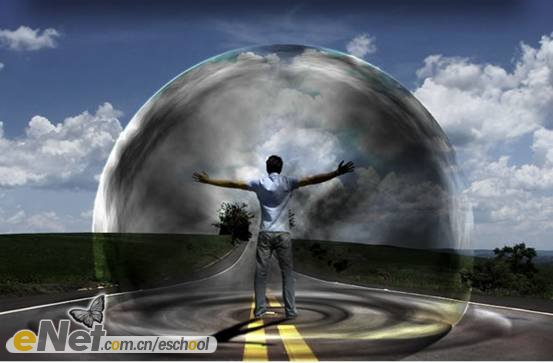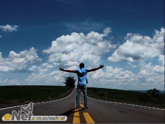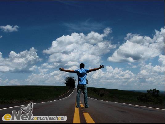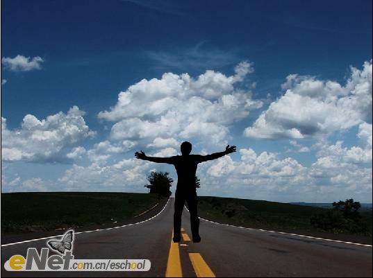 第一步:新建一個(gè)800×600像素的文件,將其命名為【沖擊波】。打開【素材1】,并使用【移動(dòng)工具】將其移動(dòng)到【沖擊波】中,將圖層重命名為【路】,如下圖所示。