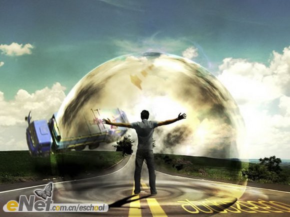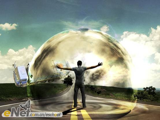 你可以繼續(xù)在圖中添加其它元素,比如路標(biāo)或者更多的車輛等,但是要記得通過“曲線”來調(diào)整物體的明暗,使場景看起來更加真實(shí)。最終效果圖如下。