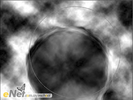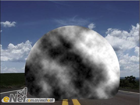 第七步:新建一層,將其重命名為【云】。執(zhí)行【濾鏡—渲染—云彩】命令,進(jìn)入路徑調(diào)板,按住【ctrl】鍵不放,點(diǎn)擊【工作路徑】的縮略圖,載入選區(qū),如下圖所示。