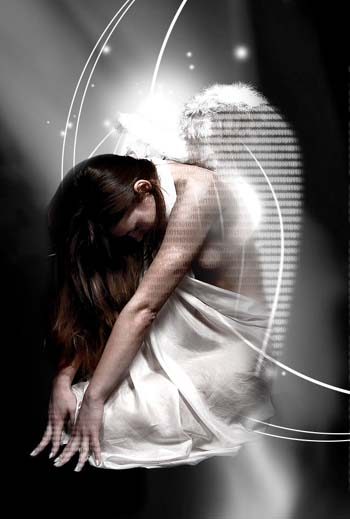 16、輸入“angel”字符,并為文字層添加外發(fā)光效果,完成最終效果。