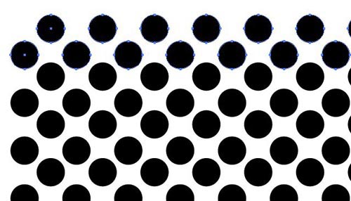 現在我們開始制作一個圓形網格背景。打開illustrator,畫出一個圓,并復制它,讓它們之間有段距離并保持水平。