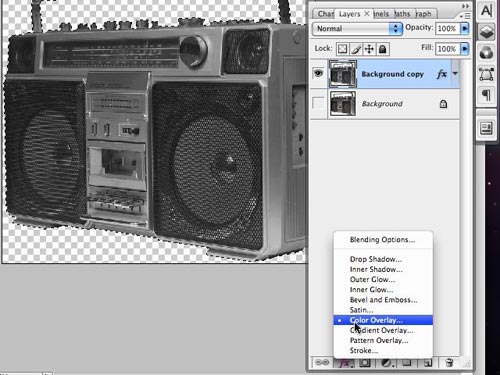 首先選擇一些圖片,我選擇了一個彩色的播放機圖像,為了讓它看起來象大塊的金子,所以對它進行去色處理。使用“去色”(shift+ ctrl+u)