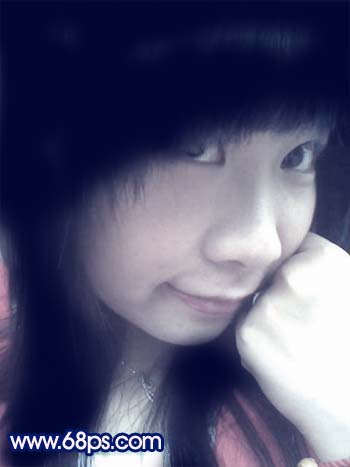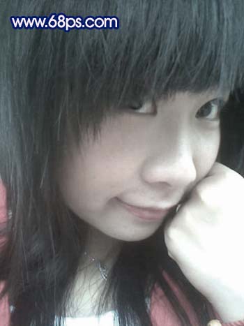 1、打開原圖素材,把背景圖層復制一層,然后選擇加深工具把左眼的眼珠加黑一點,眼白不要留那么多,效果如圖1。
