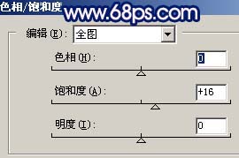 7、創建色相/飽和度調整圖層,把飽和度調大一點,參數設置如圖9,效果如圖10。