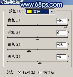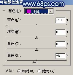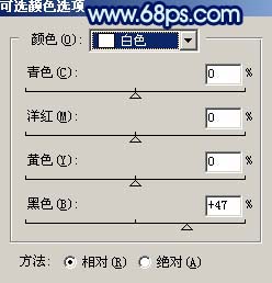 4、創(chuàng)建可選顏色調(diào)整圖層,參數(shù)設(shè)置如圖5-9,效果如圖10。