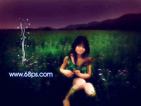 本教程介紹有點(diǎn)類似暗夜精靈的效果制作。不過制作方法完全不一樣。本教程基本上沒有改變主體的色彩,只是調(diào)整人物及背景的光感,然后再加上其它裝飾。由于時(shí)間匆忙忘記給人物加上翅膀!