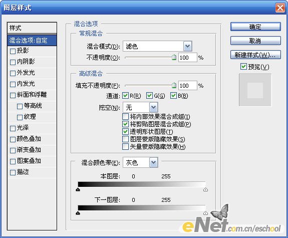 設置圖層樣式,混合模式選擇“濾色”