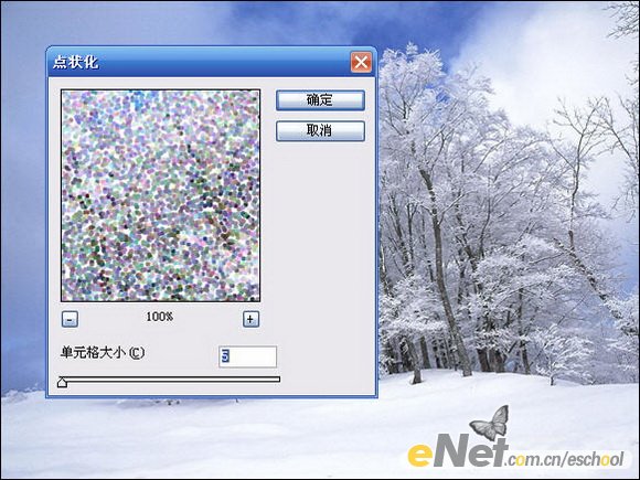 復制背景層,濾鏡--像素化--點狀化,設置參數如圖