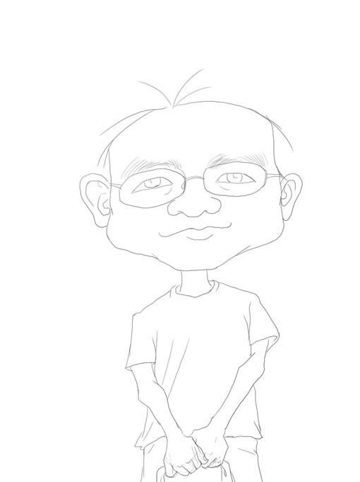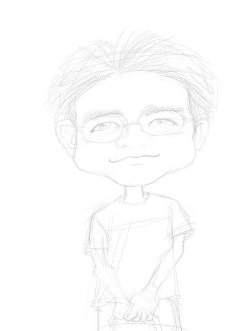 3,開始打草稿,打草稿可以隨意點,盡量往第一感覺畫,這個階段是最重要的,馬虎不得。草稿出來后,仔細看看,感覺不對的地方再修改, 最好在畫完草稿后過段時間再來看看,這樣會更加準確。人物的幾個結構線要突出一下。(現在的草稿是擦除調整過的線稿)