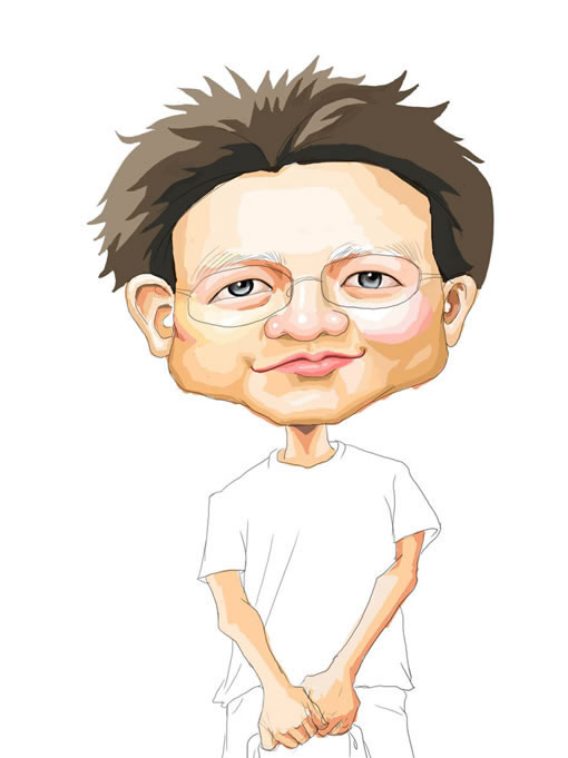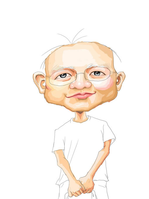 1.先看成稿,是一副人物肖像漫畫。上色風格很像ps做的等高線上色圖吧。其實我不是用ps拉選區上的色,用一個小日本的小軟件oc涂的:-)。涂比拉選區快多了,也較為隨性。個人感覺。
