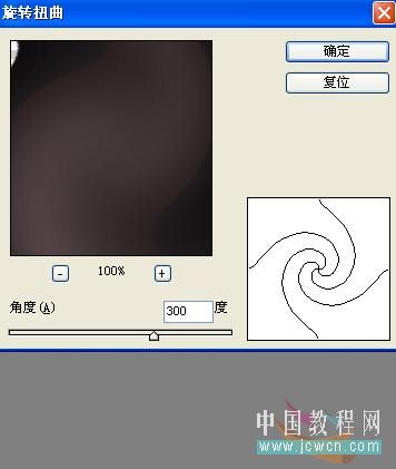七、執(zhí)行濾鏡——扭曲——旋轉(zhuǎn)扭曲,設置如圖: